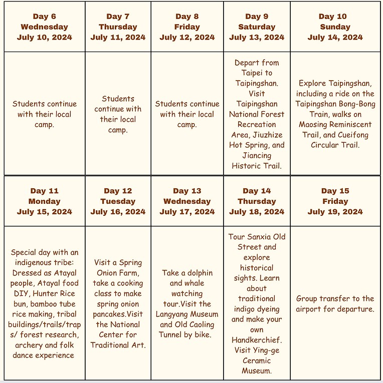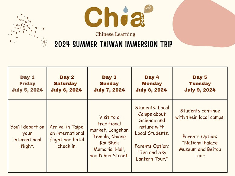We are delighted to share the highlights from our recent enriching trip to Taiwan, which took place from July 5th to July 19th, 2024. This incredible adventure was tailored for our Chia learners and their families, reinforcing our commitment to providing authentic experiential learning opportunities.